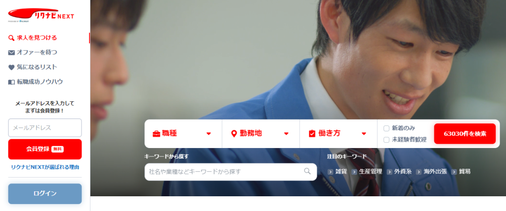 会員数は約1000万人、転職者の約8割がリクナビNEXT(ネクスト)を利用しているという実績も。