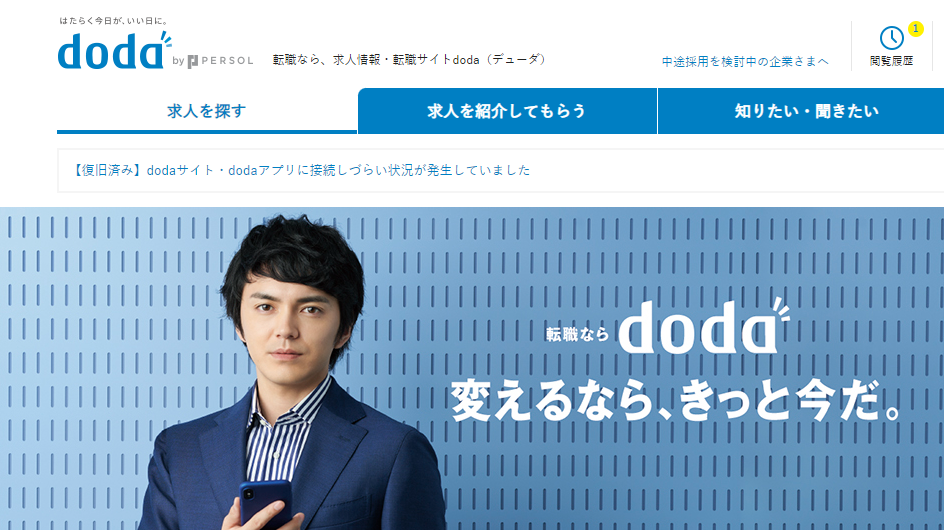 dodaは求人広告媒体としてだけでなく、人材紹介サービスも提供。